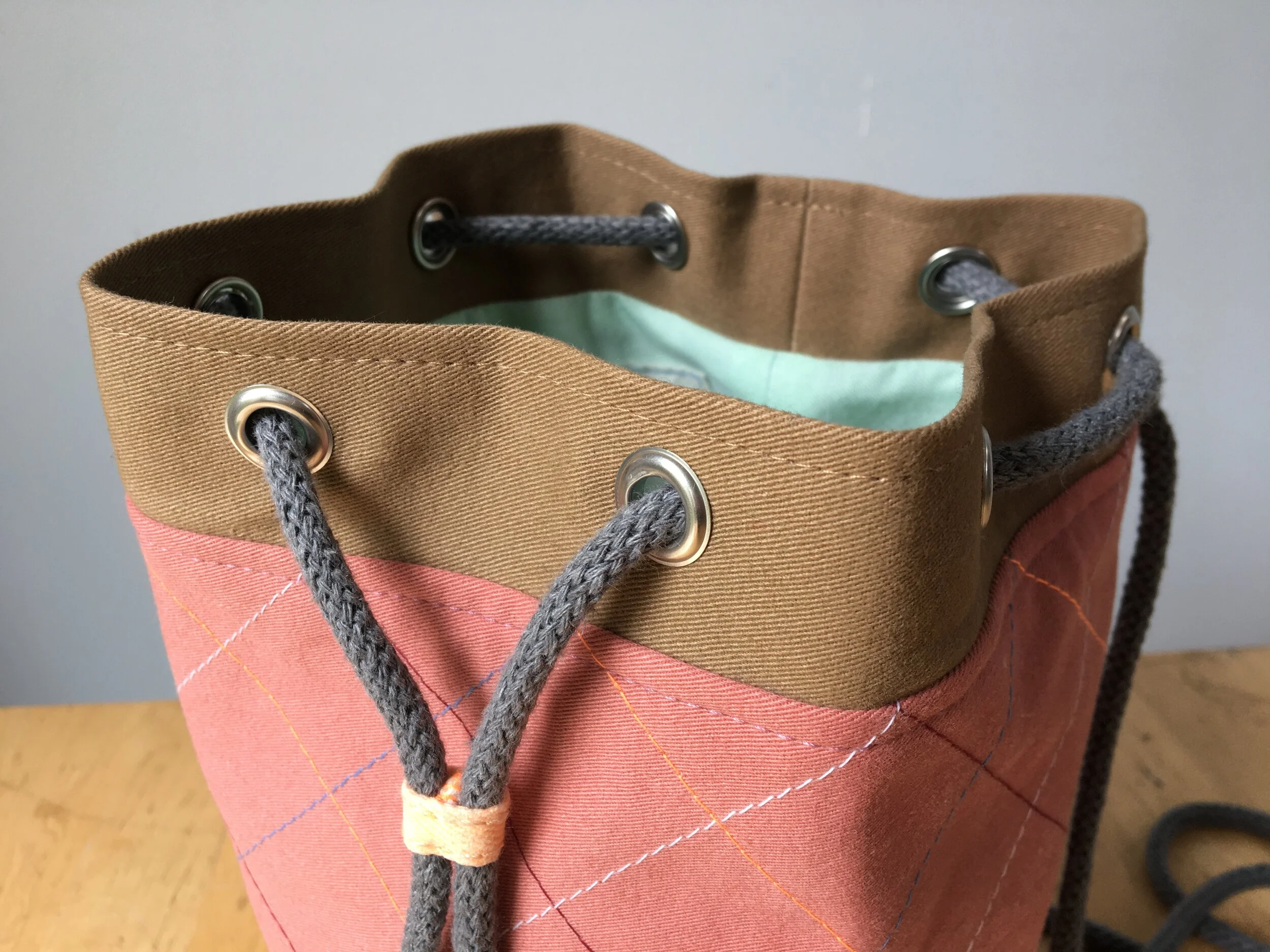 Palette 3 - Boule bag in coral and grass green repurposed fabrics