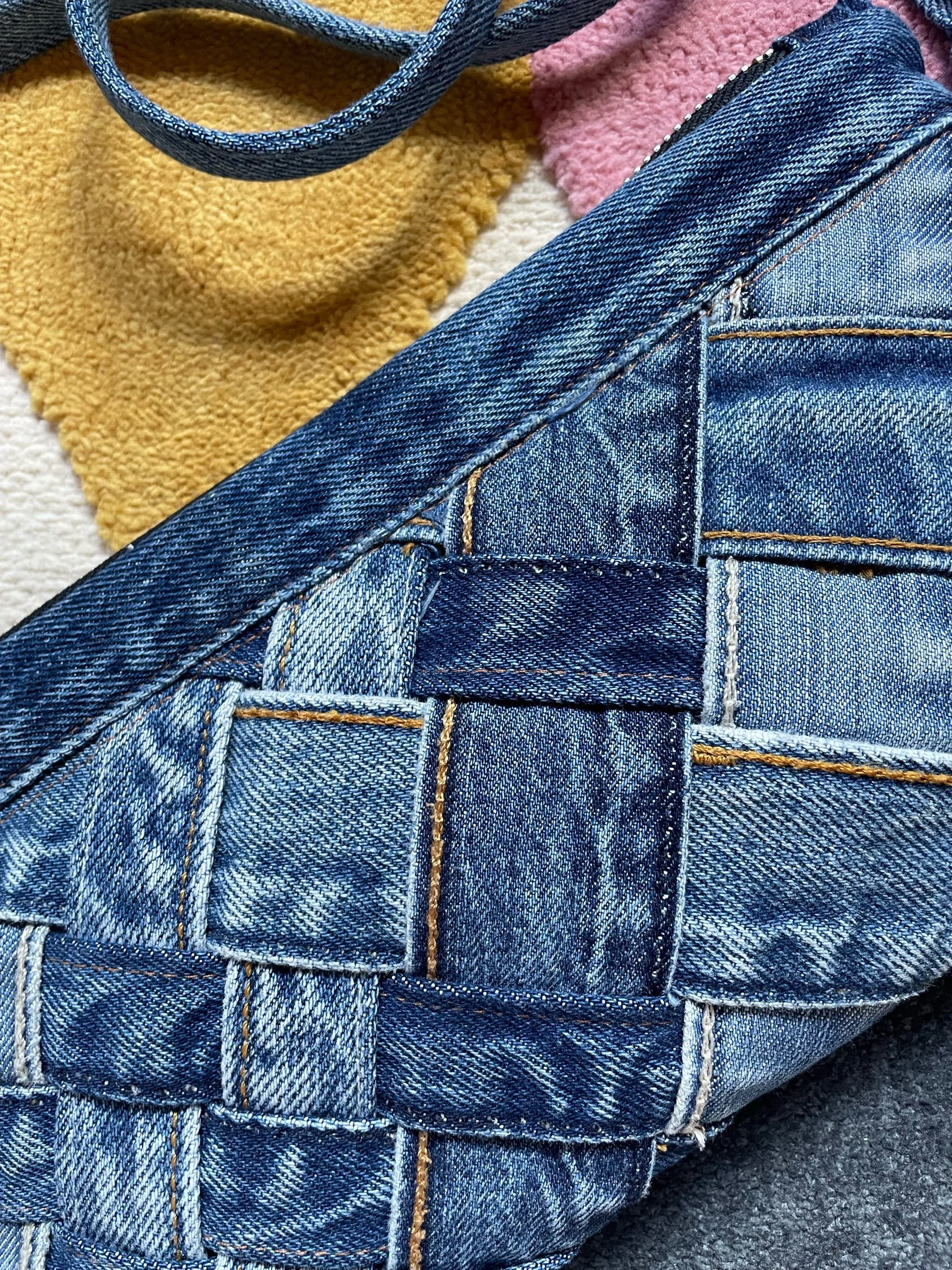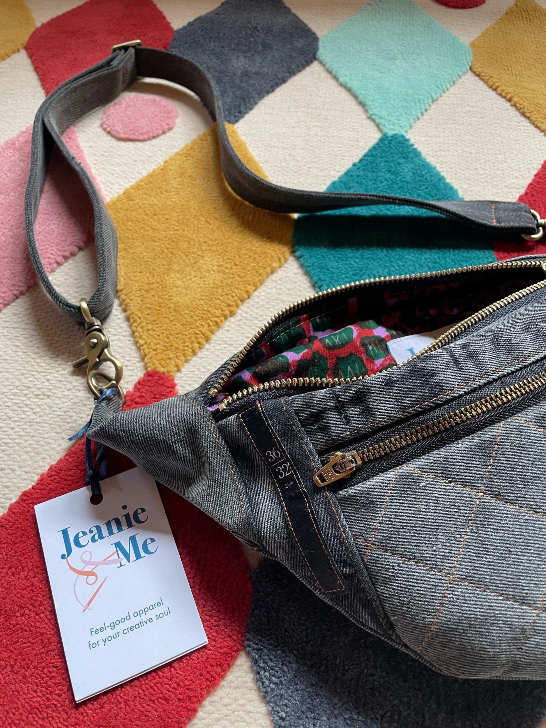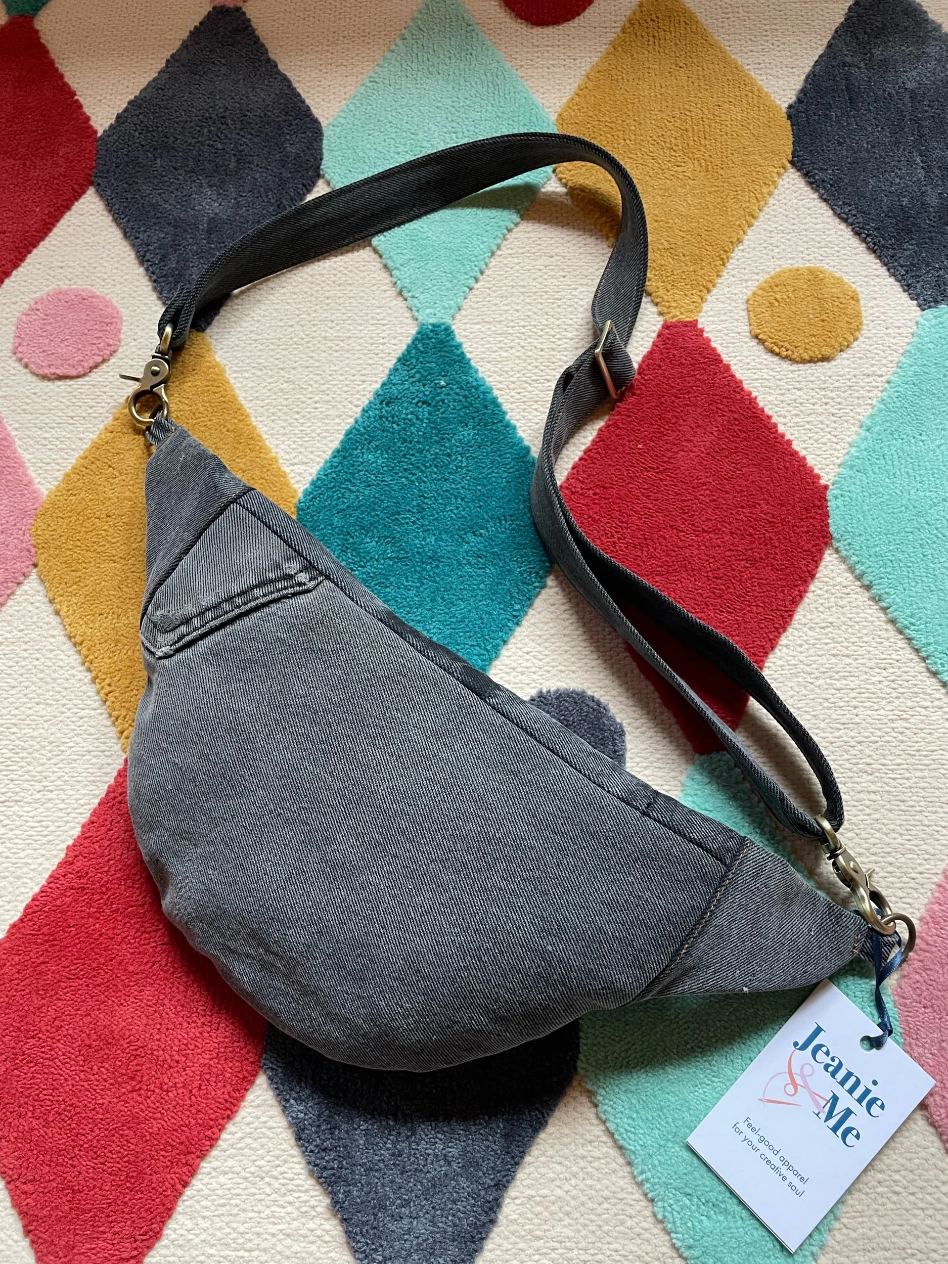 This bag has a luxurious grey wool fabric back and adjustable strap. Smooth-running YKK metal zips and chrome clips.