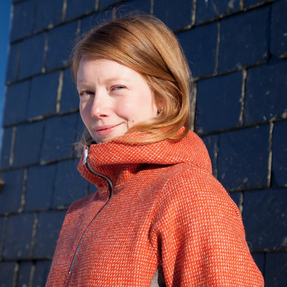 ‘The Orange’ is a plain weave with an uplifting and joyful hue. With beautiful depths of rich colour in the yarn it evokes images of rusted iron roofs amongst Hebridean crofts, summer sunsets and oystercatcher bills along the tideline.